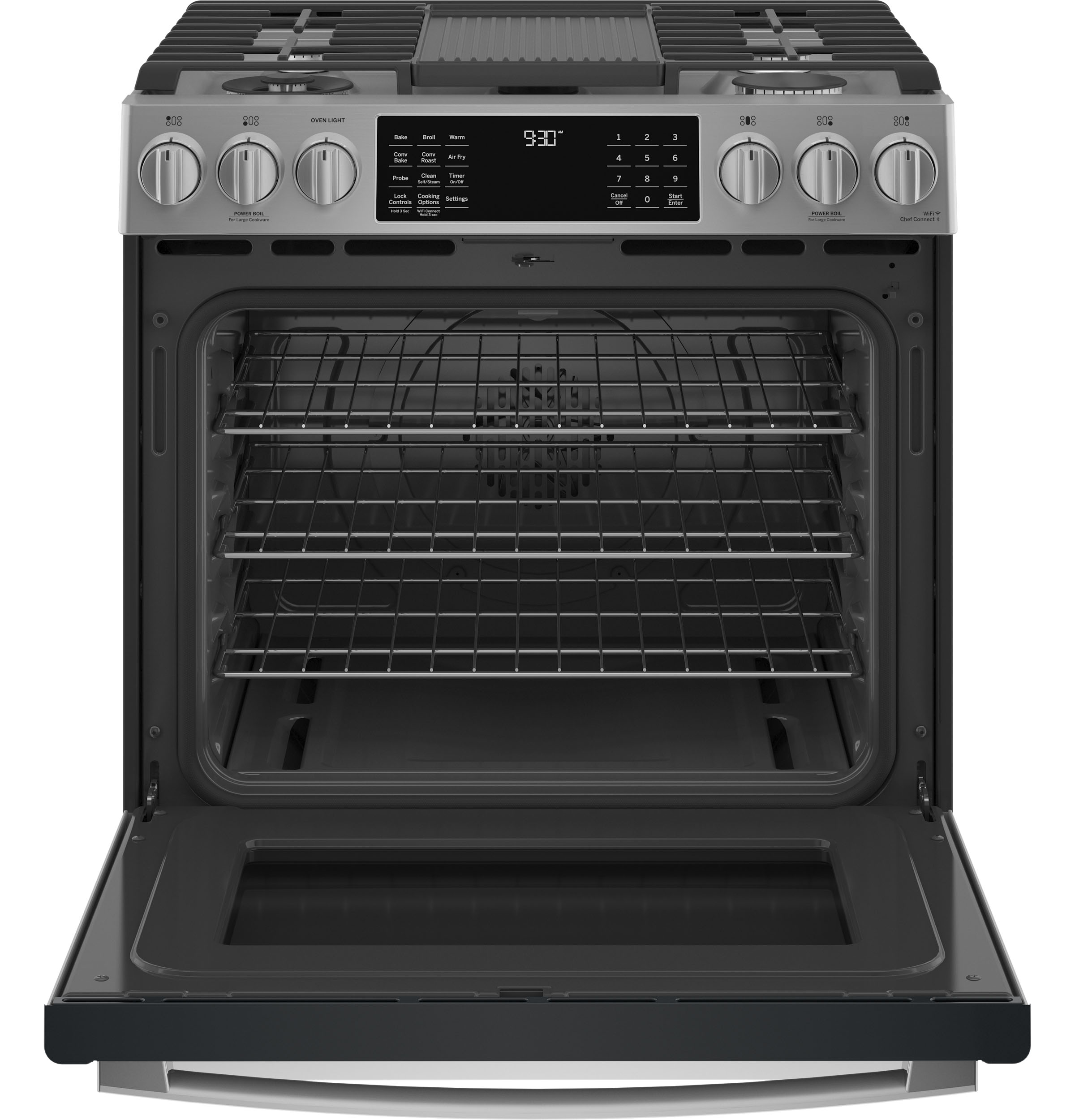 GE Profile™ 30" Smart Slide-In Front-Control Gas Fingerprint Resistant Range with No Preheat Air Fry