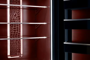 - The bold red and snakeskin motif on the interior of a Burlesque column is complemented by Cuts leather panels or other animal patterns and textures. Add a custom handle to design a column pair that is unlike any other in the world. Panel and handle sold separately.
