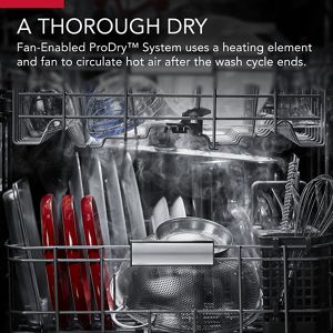 • combines a heating element and fan for optimal drying performance. It circulates hot air around dishes after the wash cycle to give them a thorough dry. To activate, select the ProDry™ Option or Extended ProDry™ Option.