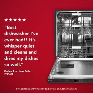 • provides quiet cleaning without compromising performance, so there’s no need to wait to run a wash cycle while entertaining and enjoying meals, even in open concept kitchens.