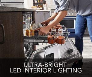 Master the mess of making with this dishwasher’s three racks of versatile loading possibilities and complete wash coverage. The FreeFlex™ Third Rack fits glasses, mugs, bowls, silverware and cooking tools, freeing up room below for pots, plates and mixing bowls. Advanced Clean Water Wash System circulates clean water to dishes in all three racks. LED Interior Lighting illuminates inside for easy loading and unloading.